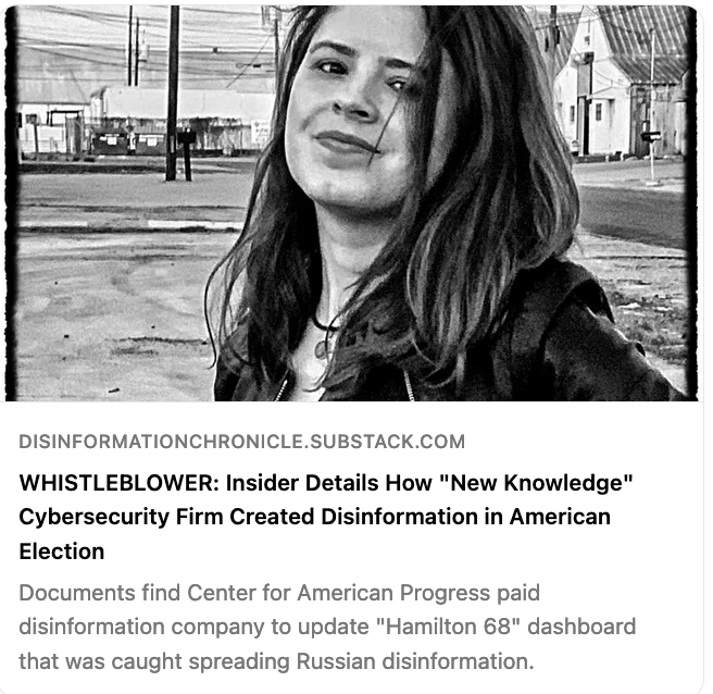 Whistleblower Says “New Knowledge” Cybersecurity Firm Run by Jonathan Morgan & Renee DiResta Trafficked in Election Disinformation